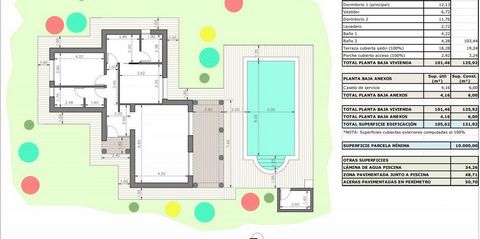 Cada propiedad se encuentra en una zona vallada de aproximadamente 2500 m² dentro de una parcela rústica de 10 000 m², lo que garantiza una gran privacidad y espacio. Las villas incluyen una piscina privada de 8 x 4 m, un porche, un trastero y un aparcamiento exterior privado.
