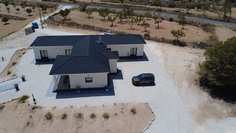 Pinoso Showstopper — new, stylish and ready to make your neighbours slightly jealousWe are delighted to present a brand-new single-storey luxury villa (finished March 2025) that manages to be both striking and sensible — a sun-soaked masterpiece set on a 10,431 m² plot with panoramic mountain views, just 8 minutes from Pinoso. If you’re after jaw-dropping vistas, modern comfort and an outdoor life that rivals any holiday brochure, this is it.Why you’ll fall in love (and stay in love)Contemporary curb appeal: Crisp white façades, matte-black roof tiles and sleek black window frames — minimal fuss, maximum impact. It looks expensive because it is.Spacious living, drenched in light: An open-plan lounge and dining area framed by large windows so the view does the heavy lifting. Add a wood-burning stove for atmosphere and the occasional dramatic fire-side toast.Kitchen goals: Designer kitchen with cooking island and unbroken countryside views — excellent for serious cooks, amateur chefs, and anyone who likes to pretend they know what sous-vide means.Bedrooms that behave: Three double bedrooms, each with a luxurious en-suite (one with a bath for those who insist on soaking away the world). Two bedrooms feature roomy walk-in wardrobes; the third has a smart built-in. Plus an extra room currently used as an office — easily converted into a guest room or snooze nook.Practical comforts: Air conditioning and heating, electric boiler plus thermal solar boiler (and prepped for panels) — comfortable year-round with an eco-friendly nudge. Utility room for washer/dryer keeps laundry out of sight and out of mind.Outdoor life — done properlyPrivate pool: 9.5 x 4 m pool with stylish outdoor shower and WC — perfect for laps, lazing, or claiming the title of “most enviable BBQ host.”Generous plot: 11,736 m² total with 3,000 m² already fenced for privacy, pets and planting ambitions. The remainder offers space to expand, grow, or simply admire.Panoramic serenity: Uninterrupted mountain views that turn everyday coffee into a cinematic moment.Practical plusesNew build — move-in ready with high-quality finishes throughout.Single-storey layout — modern, accessible living without the stairs.Energy-conscious setup — prepared for solar panels, thermal solar boiler included.Close to Pinoso — rural tranquility with town conveniences just minutes away.Bottom line A refined, contemporary villa that balances elegant design, practical luxury and irresistible outdoor living. It’s the kind of home that makes guests linger, friends visit more often, and you seriously consider staying in Spain for longer than you planned.Contact us today to arrange a viewing. Bring sunglasses — and maybe a spare pair for anyone who hasn’t yet seen the view.