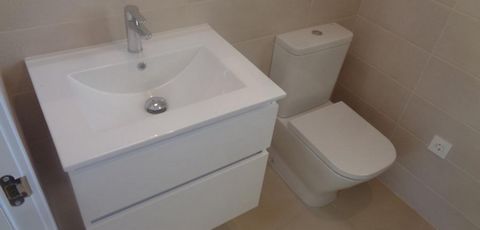 Los baños incluyen columna de ducha, plato de ducha o bañera, muebles de lavabo (varios colores a elegir) con fregaderos, grifos y espejos, además de una gran selección de azulejos de pared.