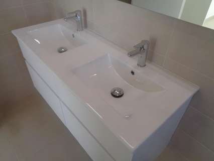 Los baños incluyen columna de ducha, plato de ducha o bañera, muebles de lavabo (varios colores a elegir) con fregaderos, grifos y espejos, además de una gran selección de azulejos de pared.