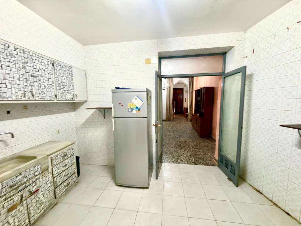 Desde la cocina se accede a un patio interior, que aporta ventilación y luz natural, y que conecta con un cuarto de ducha completo (con plato de ducha, lavabo, WC y bidé).