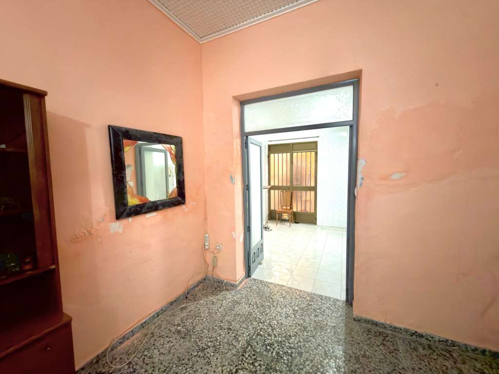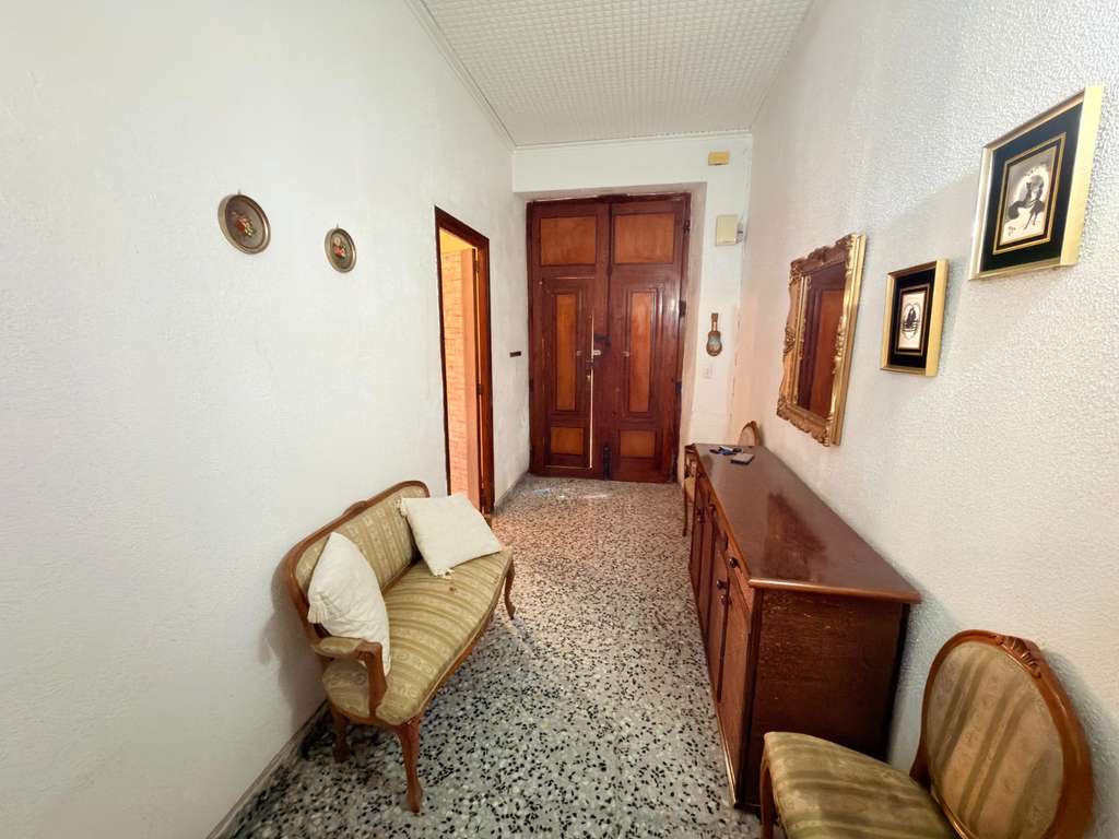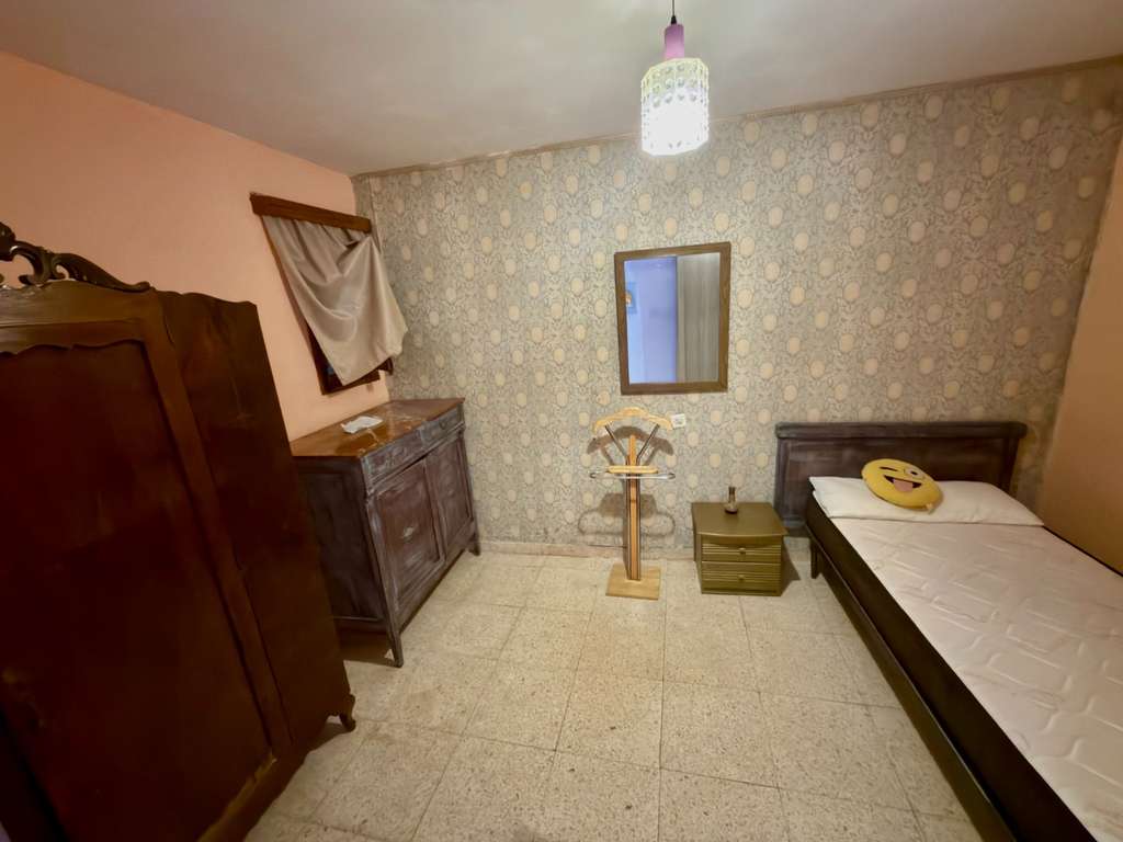Accedemos a la vivienda a través de un amplio hall de entrada que distribuye las distintas estancias. Desde aquí encontramos un dormitorio en planta baja, situado en la parte delantera, con buena entrada de luz natural y acceso directo a la fachada mediante puertas tipo balcón.