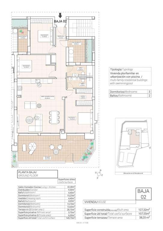 Exclusivos Apartamentos de Obra Nueva con Vistas a los Viñedos en Hondón de las Nieves Viviendas Modernas en un Entorno Natural Único Descubra esta nueva promoción de apartamentos en Hondón de las Nieves, un encantador pueblo situado en un hermoso valle rodeado de olivares y almendros. Este residencial ofrece 15 exclusivas viviendas de 2 y 3 dormitorios, todas diseñadas para ofrecer el máximo confort, eficiencia energética y unas impresionantes vistas a los viñedos del Vinalopó. Ubicado en el Vinalopó Medio, este tranquilo enclave es ideal para quienes buscan un estilo de vida mediterráneo relajado, con fácil acceso a la naturaleza y a todos los servicios esenciales. Características de Alta Calidad y Diseño Moderno Cada apartamento ha sido diseñado con materiales de primera calidad y una distribución funcional, ofreciendo: Espacios amplios y diáfanos, ideales para la vida moderna. Cocinas completamente amuebladas con encimeras de granito. Baños de alta gama con cisternas empotradas y sanitarios de primera calidad. Eficiencia energética con sistema de aerotermia para agua caliente. Preinstalación de aire acondicionado por conductos, garantizando confort en todas las estaciones. Ventanas de aluminio con doble acristalamiento, proporcionando aislamiento térmico y acústico. Puerta de entrada de seguridad reforzada para mayor tranquilidad. Plaza de aparcamiento y trastero en sótano, incluidos en el precio. Ascensor en el edificio, asegurando accesibilidad y comodidad. Placas solares en la azotea para mejorar la eficiencia energética y reducir costes de mantenimiento. Además, el residencial cuenta con una piscina comunitaria, perfecta para disfrutar del clima mediterráneo. Ubicación Privilegiada en Hondón de las Nieves Hondón de las Nieves es una localidad con gran tradición vinícola, famosa por su uva de mesa con denominación de origen Vinalopó. Rodeado por la Sierra de Crevillente, el entorno ofrece numerosas rutas de senderismo, espacios naturales y una rica oferta cultural e histórica. Desde su nueva vivienda, tendrá acceso rápido a los principales puntos de interés de la zona: Aeropuerto de Alicante – 30 km (30 minutos en coche) Playas de Alicante – 35 km (35 minutos en coche) Elche – 20 km (20 minutos en coche) Parque Natural de Crevillente – 10 km (15 minutos en coche) Campos de golf – 25 km (30 minutos en coche) Un Hogar Ideal en la Costa Blanca Disfrute de la tranquilidad del Valle del Hondón, sin renunciar a la proximidad de Alicante y Elche. Ya sea como residencia habitual, casa de vacaciones o inversión inmobiliaria, estos modernos apartamentos son una opción inmejorable. Contacte con nosotros hoy mismo para más información o para concertar una visita.
