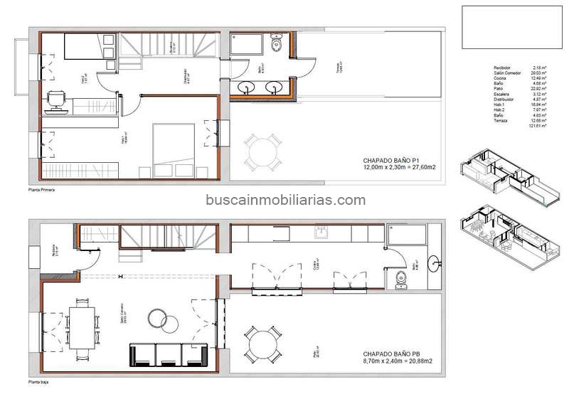 •La cocina, situada en la parte posterior, es alargada y funcional, con gran superficie de encimera y espacio de almacenaje. Desde aquí se accede a un área exterior o patio según las imágenes.