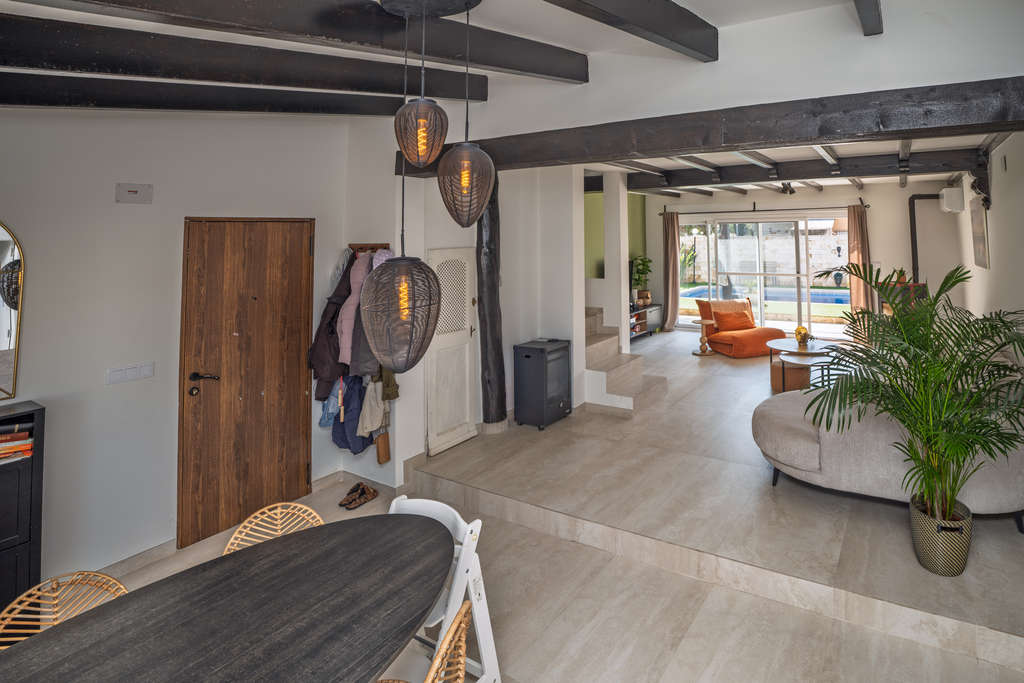 Ubicada sobre una amplia parcela de 1.963 m², esta propiedad ofrece un entorno privado donde disfrutar del auténtico estilo de vida mediterráneo. La vivienda, con 141 m² construidos, ha sido completamente renovada, incluyendo tejado, electricidad y ventanas de doble acristalamiento, garantizando confort, eficiencia y tranquilidad.