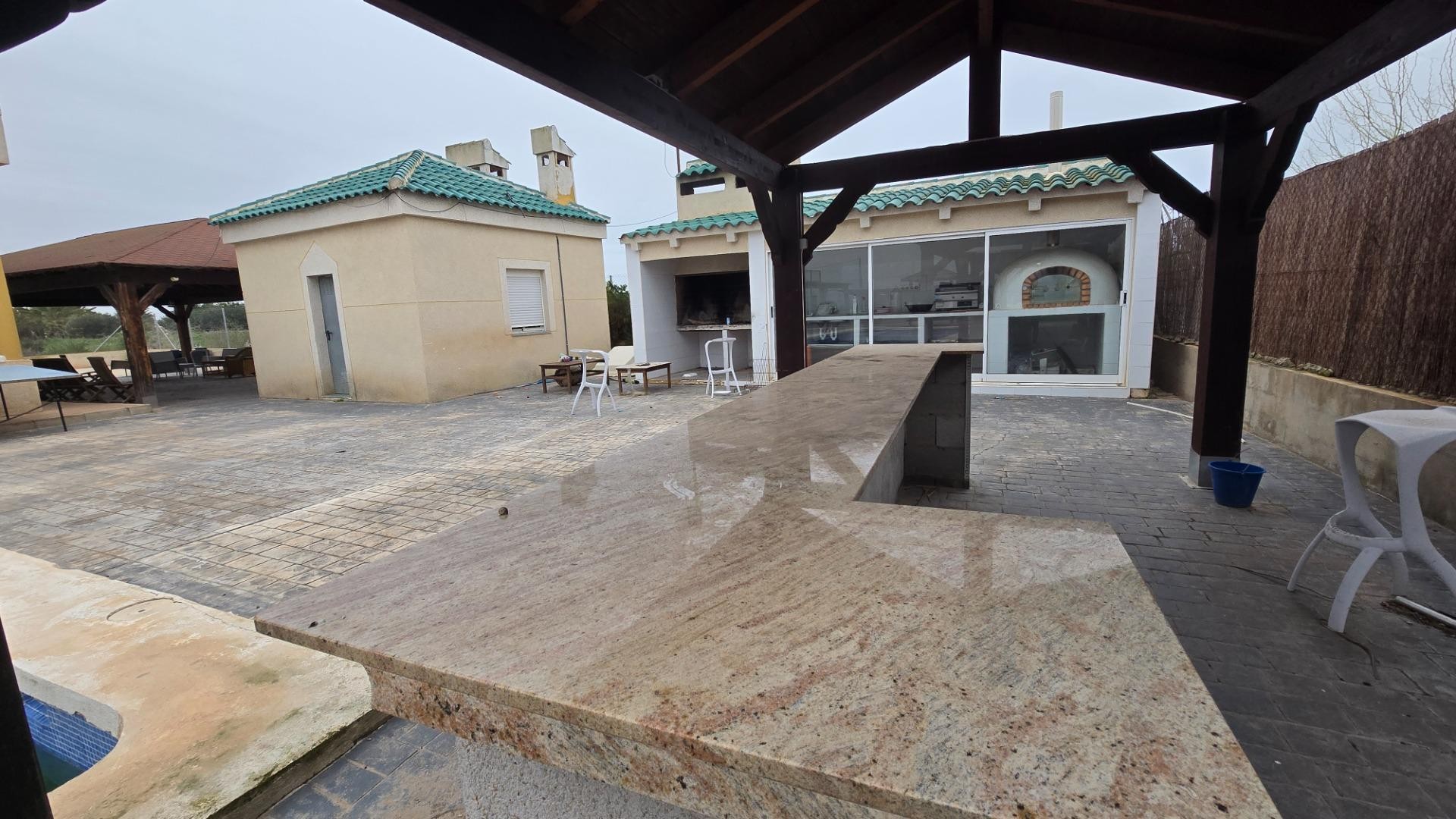 DOS CASAS INDEPENDIENTES EN UNA DE ELLAS HAY 3 DORMITORIOS Y DOS BAÑOS UNO DE ELLOS EN SUITE, SALON COCINA CON TECHOS ALTOS ,, PISCINA Y BUENA BARBACOA, CON UN TECHADO DE MADERA GRANDE DE UNOS 40 METROS PARA LAS TARDES CARULOSAS DE VERANO ,,La otra casa esta abajo diafana con un baño y arriba hay otra planta que salen 3 dormitorios y encima un solariun con una vistas espectaculares ,, Chalet en La marina zona La Marina, 320 m. de superficie, 2000 m. superficie parcela, 5000 m. de la playa, 2 habitaciones dobles y 4 habitaciones sencillas, 4 baños, propiedad reformada, cocina sólo muebles, carpintería interior de lacado blanco, suelo de gres, carpintería exterior de aluminio / climalit.