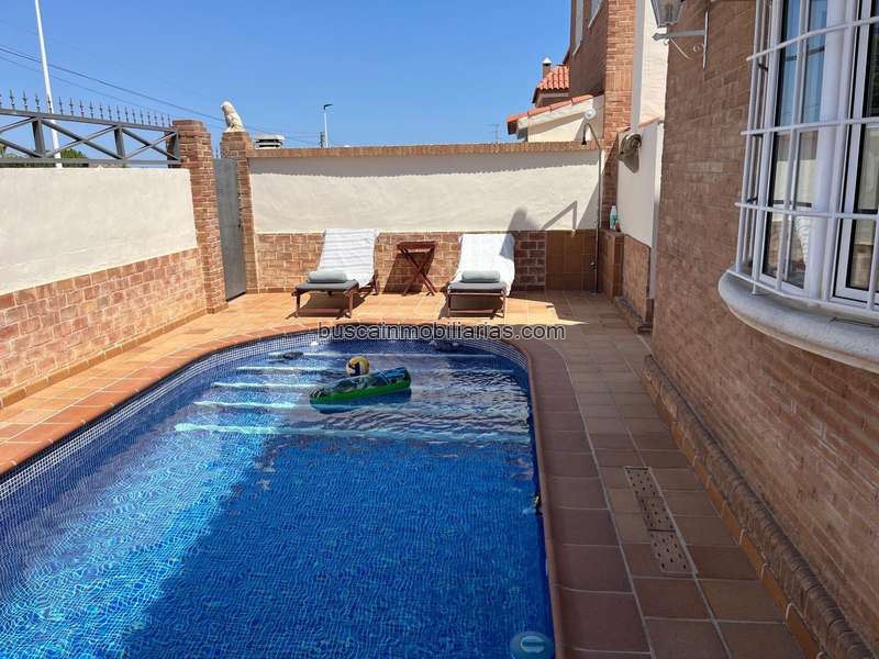 Piscina privada con zona de tumbonas, perfecta para relajarse en verano