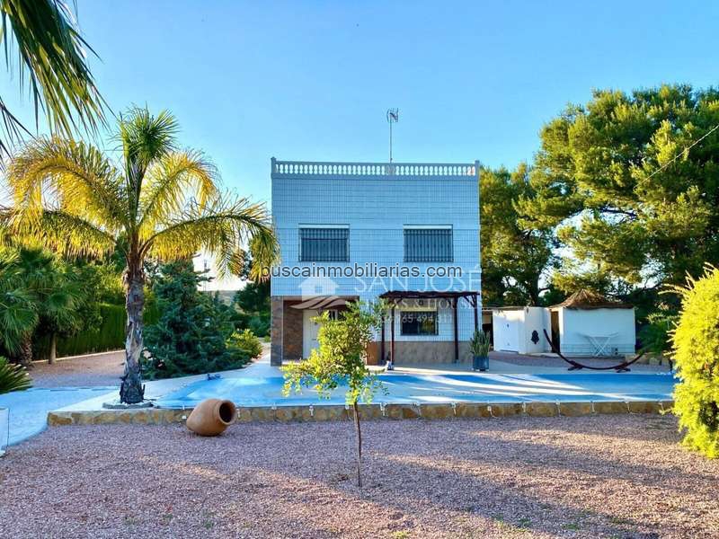 ¡Atención, amantes del buen vivir! Presentamos este espectacular chalet en Carrús, Elche. Con un precio irresistible de solo 489.000€, te ofrecemos espacio para soñar y disfrutar a lo grande: ¡349 m2 construidos que incluyen una amplia terraza de 18 m2 perfecta para tus barbacoas veraniegas! Este hogar cuenta con dos habitaciones dobles (sí, eso significa más siestas) y una sencilla, también cuenta con una pequeña casita independiente deal para el amigo que se queda a dormir después de la fiesta. Además, tendrás no uno ni dos, sino TRES baños (dos completos y un aseo), así evitarás las largas filas matutinas antes del café. Y esperen... ¡una piscina refrescante espera por ti en tu propio jardín vallado rodeado de árboles encantadores! La parcela tiene unos generosos 1950 m2 donde podrás organizar juegos al aire libre o simplemente relajarte bajo el sol mediterráneo sin preocupaciones porque aquí todo es exterior; privacidad total garantizada gracias a su puerta blindada. ¿Tienes coche? No hay problema: incluye parking privado e incluso trastero adicional para todos esos tesoros acumulados durante los años. Ubicación ideal tranquila pero cerca suficiente como para llegar rápido al bullicio urbano cuando quieras escapar del relax paradisiaco… Sin duda esta casa está lista par hacerte sentir como rey/reina en tu castillo personal justo a pocos kilómetros del corazón vivaz de Elche.