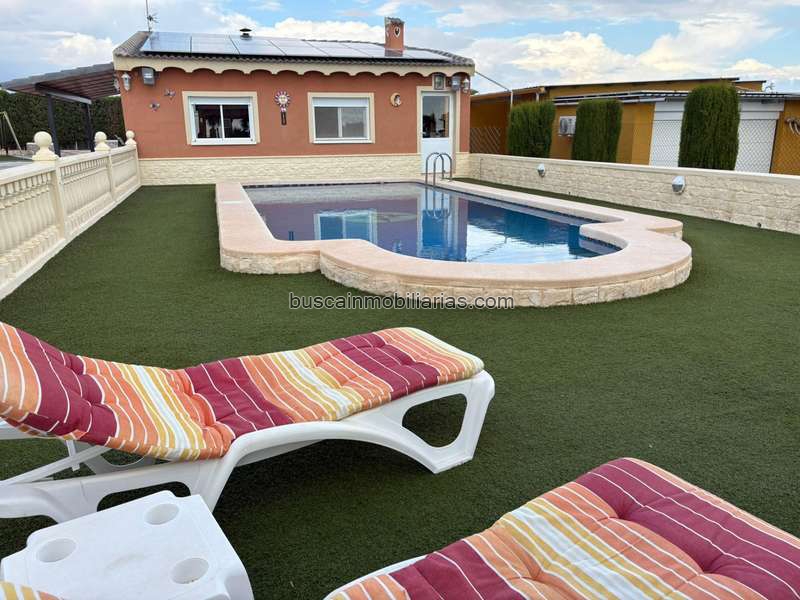 Se vende (también en opción a compra) este espectacular chalet en Partida Peña Las Aguilas con piscina, barbacoa, todo en una planta y placas solares y agua propia!!!