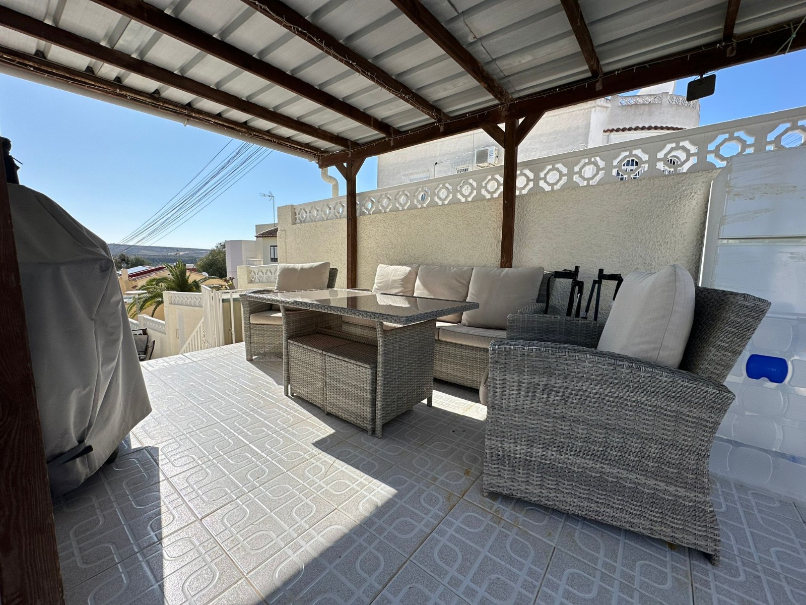 Esta encantadora casa unifamiliar en la popular urbanización La Marina impresiona por su distribución bien pensada, sus amplias zonas exteriores y sus versátiles opciones de uso.