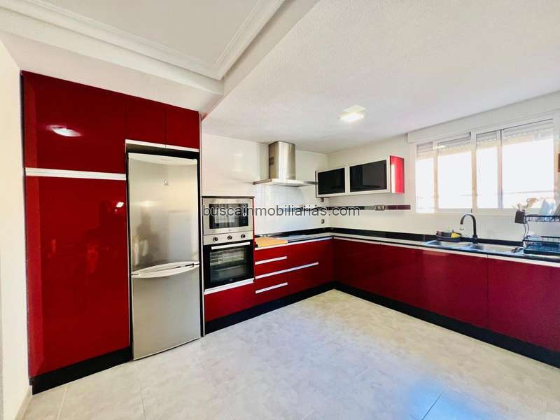 El salón es un espacio abierto y luminoso, que invita a relajarse o a disfrutar de reuniones en un ambiente acogedor. La cocina, de estilo contemporáneo, ha sido equipada con electrodomésticos y ofrece amplias zonas de almacenamiento. Además, está diseñada para integrarse visualmente con el resto de la vivienda, creando una sensación de amplitud y fluidez en los espacios comunes.