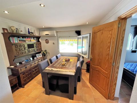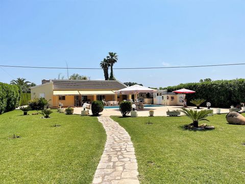 Descripción del objeto: Esta villa privada de 5 dormitorios en la planta baja tiene todo lo que su corazón desea. La gran parcela (completamente amurallada) es el sueño de un amante de los jardines. Además, la preciosa piscina (climatizada), la cocina exterior y la gran zona de terraza invitan a relajarse. También puede ponerse cómodo en el jardín de invierno. La casa principal consta de 3 dormitorios, salón, cocina, baño más un aseo de invitados. También se ha tenido en cuenta a los huéspedes, ya que la casa se puede dividir en dos unidades de vivienda completamente separadas (con entrada independiente). Allí encontrará 2 dormitorios, baño y aseo, y también sala de estar con cocina. Toda la casa tiene calefacción por suelo radiante y aire acondicionado. ¡El garaje y el carport completan esta propiedad, así que no falta nada! Equipamiento adicional: ¡Calefacción por suelo radiante con gas (depósito de gas), aire acondicionado, piscina climatizada de 11,5 x 6 m con cubierta, 2 unidades de vivienda, lavadero, garaje, carport, persianas (parcialmente) eléctricas, protección contra mosquitos, ventanas blancas de plástico con doble acristalamiento, suelos de baldosas, SAT-TV, Internet, cocina exterior, ducha exterior/WC, sistema de alarma, jardín de invierno y mucho más! Ubicación de casa/solar: En el bonito barrio de Els Poblets, en un lugar tranquilo y soleado. Está a menos de 1,5 km de la playa. Els Poblets cuenta con una infraestructura propia que se puede recorrer fácilmente a pie o en bicicleta. También está cerca del hermoso puerto y centro turístico de Denia, al que se llega en 15 minutos en coche, pero también está cerca del valle de Orba, o del centro comercial de Ondara. Los aeropuertos de Alicante y Valencia están a una hora en coche. Otros: Calificación energética está pendiente.