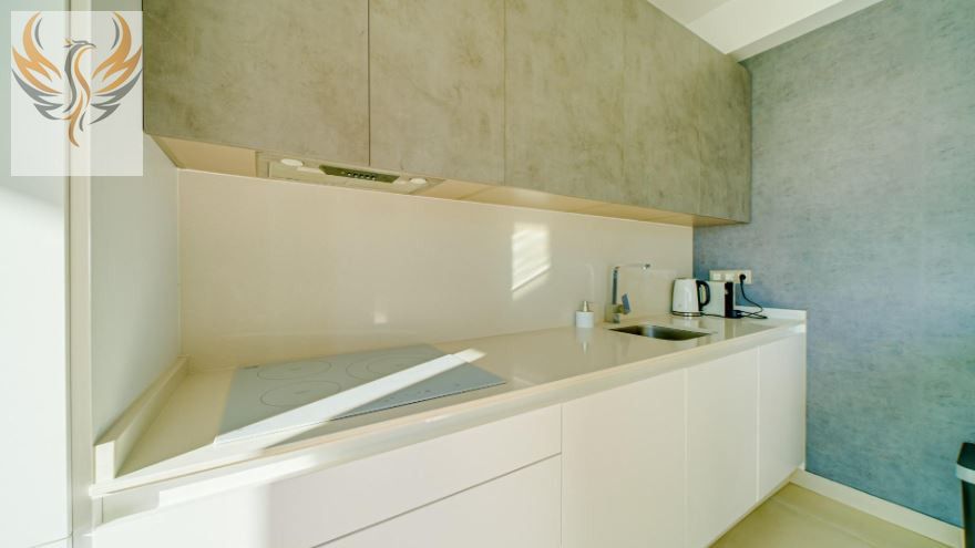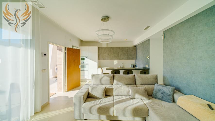 El amplio salón y la cocina con electrodomésticos de alta calidad crean un espacio cómodo y moderno. La superficie total del apartamento deja una agradable impresión de amplitud y confort.