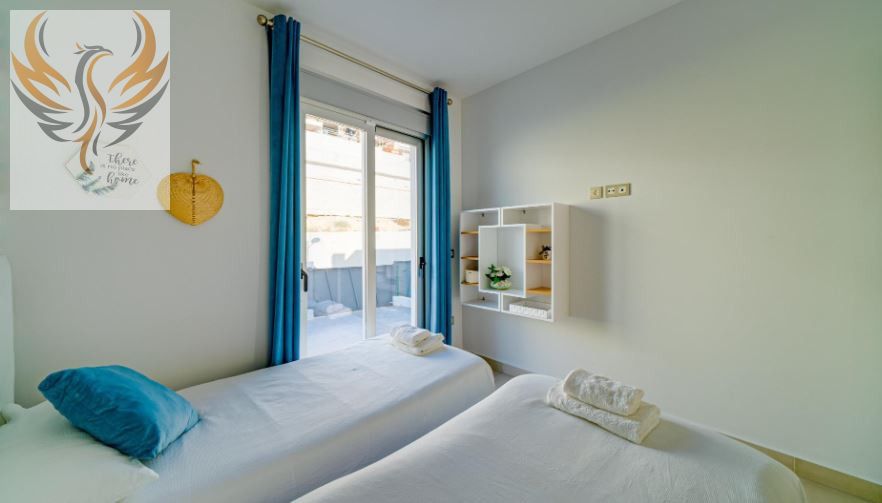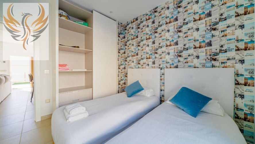 La vivienda está situada en una zona residencial nueva a sólo unos minutos del centro comercial, supermercados, restaurantes y playa de Poniente. La urbanización cuenta con una gran piscina y parque infantil.