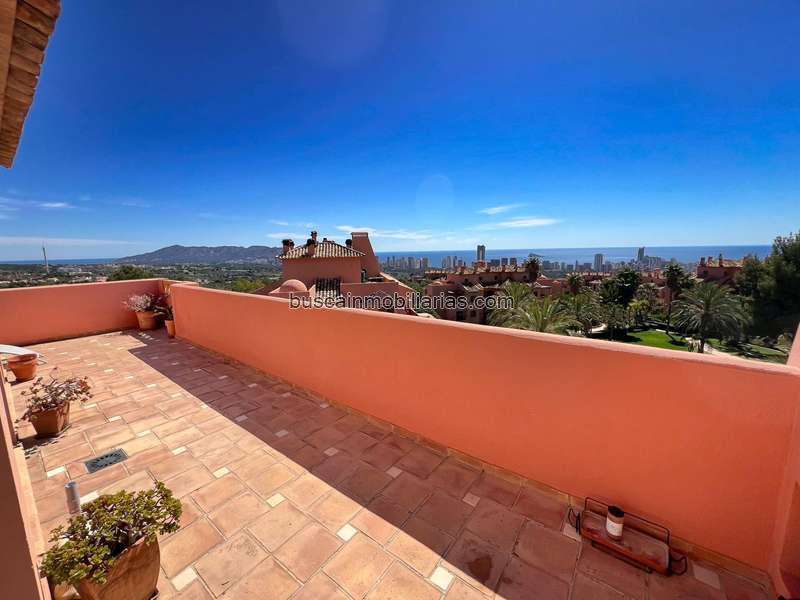 Fantástico ático dúplex de lujo con 115m2 de vivienda + 65m2 de terrazas. Urbanización cerrada con precioso jardín y dos piscinas comunitarias. Urbanización situada en la punta más alta de toda Sierra Cortina Finestrat con inmejorables vistas panorámicas al mar desde Calpe hasta Alicante!!