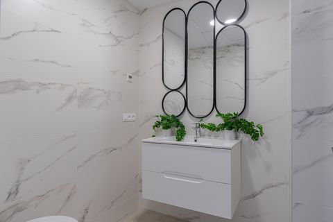 Discover a new way of living in this modern apartment complex in Finestrat, on the northern coast of the Costa Blanca. The apartments are built on different levels, following the natural slope of the terrain. Each apartment offers stunning views of the Mediterranean Sea and the Benidorm skyline. A perfect blend of design, comfort, and location – ideal for both a relaxing holiday and permanent residence. The apartments consist of 2 or 3 bedrooms and 2 bathrooms, with bright open living spaces and spacious layouts. You can choose from apartments with large terraces, ground floor apartments with private gardens and a basement, or stylish penthouses with a private solarium. Each apartment is finished with high-quality materials and equipped with air conditioning, kitchen appliances, built-in wardrobes, a storage room, and a parking space. The outdoor areas are designed for comfort and enjoyment. Whether you are relaxing on your terrace, entertaining friends in the garden, or enjoying the sea view from your solarium, these spaces invite you to unwind and make the most of every moment. The location is just a short drive from the sandy beaches of Benidorm and a large shopping center with all daily amenities and restaurants. Golf courses, amusement parks, marinas, and other recreational facilities are also nearby, allowing you to easily enjoy everything the Costa Blanca has to offer. Residents have access to first-class communal facilities, including an infinity pool, paddle tennis courts, a gym, a heated indoor pool, a sauna, a co-working space, and a social lounge. The complex is gated with 24-hour security and has shared parking spaces. Do not miss this opportunity to purchase a sea view apartment in Finestrat. Contact us today to schedule a private viewing!