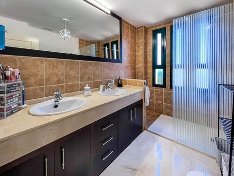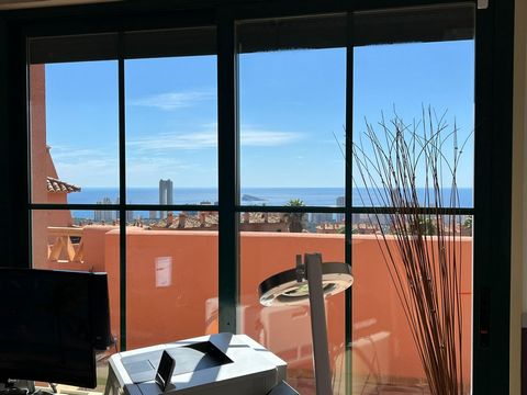 Fantástico ático dúplex de lujo con 115m2 de vivienda + 65m2 de terrazas. Urbanización cerrada con precioso jardín y dos piscinas comunitarias. Urbanización situada en la punta más alta de toda Sierra Cortina Finestrat con inmejorables vistas panorámicas al mar desde Calpe hasta Alicante!!~La primera planta consiste en un hall con aseo de invitados, cocina independiente con terraza privada de unos 15m2 con vistas a la montaña y lavadero, dormitorio principal con vestidor y baño grande en suite con ducha hidromasaje, amplio salón con terraza semicubierta de unos 25m2 y vistas a la urbanización con piscina como al mar. Mediante la escalera interior se accede a la segunda planta que tiene dos dormitorios amplios, un baño grande con bañera hidromasaje, una gran terraza descubierta de unos 25m2 con barbacoa y vistas al mar espectaculares.~El apartamento dispone de aire acondicionado por conductos, dormitorios con armarios empotrados, suelos de mármol, baños con muebles de madera incorporados, puertas de paso blancas lacados y puerta de entrada de seguridad. Plaza de garaje y trastero privado incluido en el precio. Parte de los muebles son negociables.~Urbanización con cámaras de seguridad, muy bien cuidado, situada en frente del hotel Asia Gardens, varios parques temáticos, dos campos de Golf, hoteles de lujo, muy bien comunicado con la autopista a 45 minutos del aeropuerto de Alicante.~¡Una oportunidad única!~