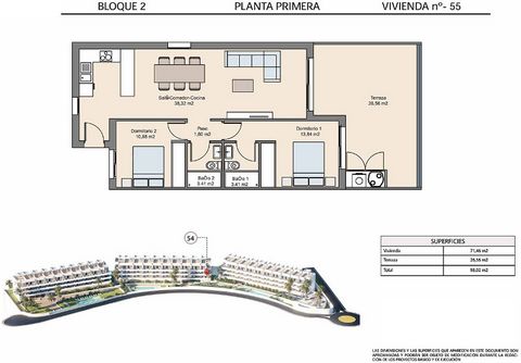 Descripción del objeto: Apartamentos que constan de una superficie construida de unas 88 m² - 98 m² (incluyendo terrazas) con 2 dormitorios, 2 baños (1 en-suite), 1 salón / comedor con cocina moderna y 1 terraza (a unos 21 m² - 27 m²). Este nuevo complejo residencial con 3 zonas de piscinas, parque infantil y gimnasio interior y exterior está compuesto de 99 apartamentso con una ubicación elevada con vistas panorámicas de Benidorm y el mar Mediterráneo. Las viviendas han sido diseñadas para aprovechar al máximo la luz natural, con amplios ventanales que enmarcan impresionantes vistas de Benidorm. La calidad de los materiales utilizados garantiza una óptima insonorización y climatización, proporcionando el máximo confort en cualquier época del año. Equipamiento adicional: Todas viviendas equipadas con la última tecnología aplicada al confort: ventanas de aluminio con doble acristalamiento, persianas en dormmitorios, puertas de seguridad, cocinas modernas (sin electrodomésticos), armarios empotrados, video portero, pre-instalación de aire acondicionado y parking privado opcional. Y, por supuesto, los edificios disponen de ascensores. Ubicación de casa/solar: El complejo está situado a pocos minutos de las mejores playas de la Costa Blanca, así como de importantes núcleos urbanos como Benidorm y uno de los mejores hoteles de Europa (Asia Gardens). Además, dispone de acceso a centros comerciales, colegios, hospitales públicos y privados, y conexiones de transporte clave, incluyendo el tren de alta velocidad y el Aeropuerto Internacional de Alicante, situado a solo 20 minutos. Acceso fácil a servicios esenciales como supermercados, restaurantes y centros médicos. Proximidad a hermosas playas de arena en Benidorm, como la Playa de Levante y la Playa de Poniente. Oportunidades para actividades al aire libre, como senderismo y ciclismo en la montaña Puig Campana y sus alrededores. Otros: Calificación energética está pendiente.