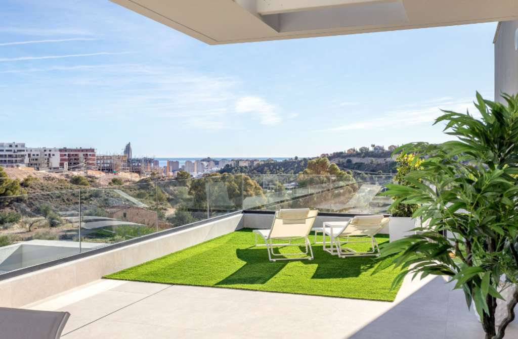 Apartamentos de lujo en venta en el nuevo complejo en FinestratOfrecemos apartamentos de 2 dormitorios y 2 baños a la venta en un nuevo y elegante complejo ubicado en una de las zonas más pintorescas de la región de la Costa Blanca Norte, Finestrat. El apartamento consta de un amplio salón-comedor, cocina abierta, 2 dormitorios, 2 baños, una gran terraza con vista al mar, acceso independiente, aparcamiento y trastero.Regalo de Pack de mobiliario de diseño por el tiempo limitado.Finestrat es una excelente ubicación para aquellos que buscan una propiedad en un clima típicamente mediterráneo con un paisaje impresionante. La popularidad de Finestrat la convirtió en una extensión virtual de Benidorm, conocida como la ¨Nueva York española¨.Las playas de Benidorm de año en año siguen ostentando la palma de primeros en toda la Costa Blanca, siendo galardonadas con la “bandera azul" honorífica. Pero se hizo famoso lejos de ser gracias a unas serenas vacaciones en la playa: Benidorm es la capital de la "fiesta" de la región valenciana. Gran cantidad de bares, restaurantes, pubs, centros comerciales, parque acuático y la famosa sala de conciertos Benidorm Palace, la mejor de la costa mediterránea. En sus salones tienen lugar todas las semanas increíbles actuaciones de diversos programas (ballet, espectáculo de variedades, acrobacias, flamenco, conciertos de cantantes pop, orquestas), y puedes complementar el refinado ambiente con una cena del chef del restaurante.El aeropuerto de Alicante está a unos 40 km.