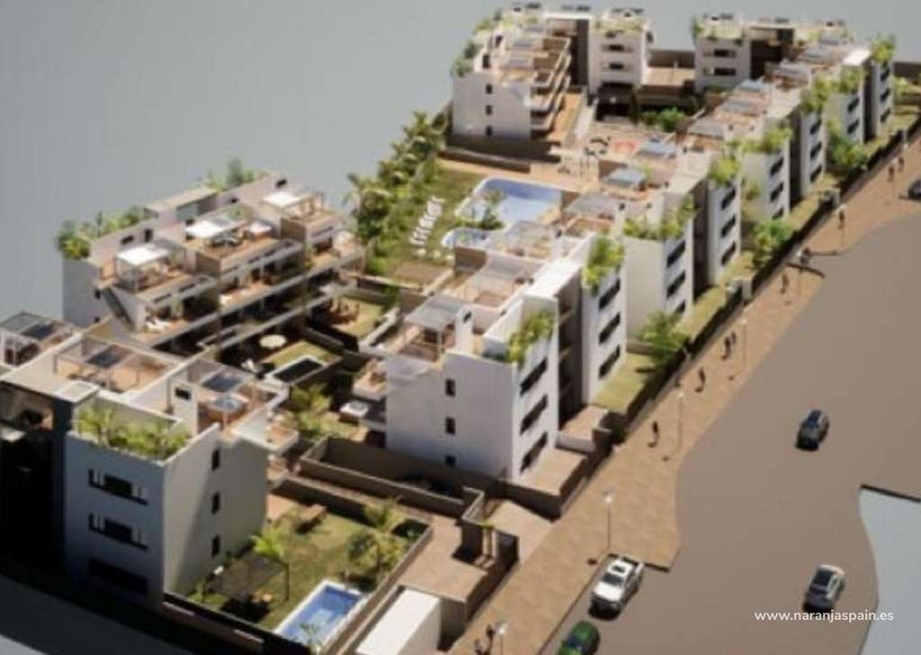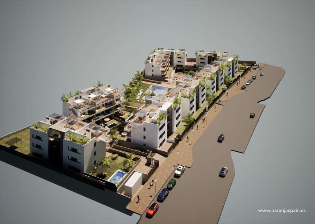 Complejo formado por 9 bloques de 9 apartamentos cada uno.Hay 3 tipos de viviendas: 27 áticos con solarium privado, 27 en primera planta con terrazas y 27 plantas bajas con jardín privado.Todo dentro de un entorno privado y exclusivo, para disfrutar de actividades deportivasy de ocio.