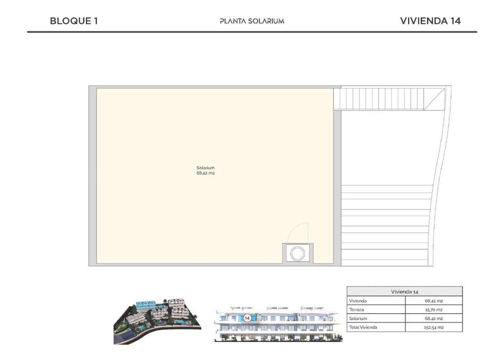 Apartamento de planta baja con un jardín, apartamentos de planta media con las terrazas y apartamentos de planta alta tiene una terraza y solarium privado.