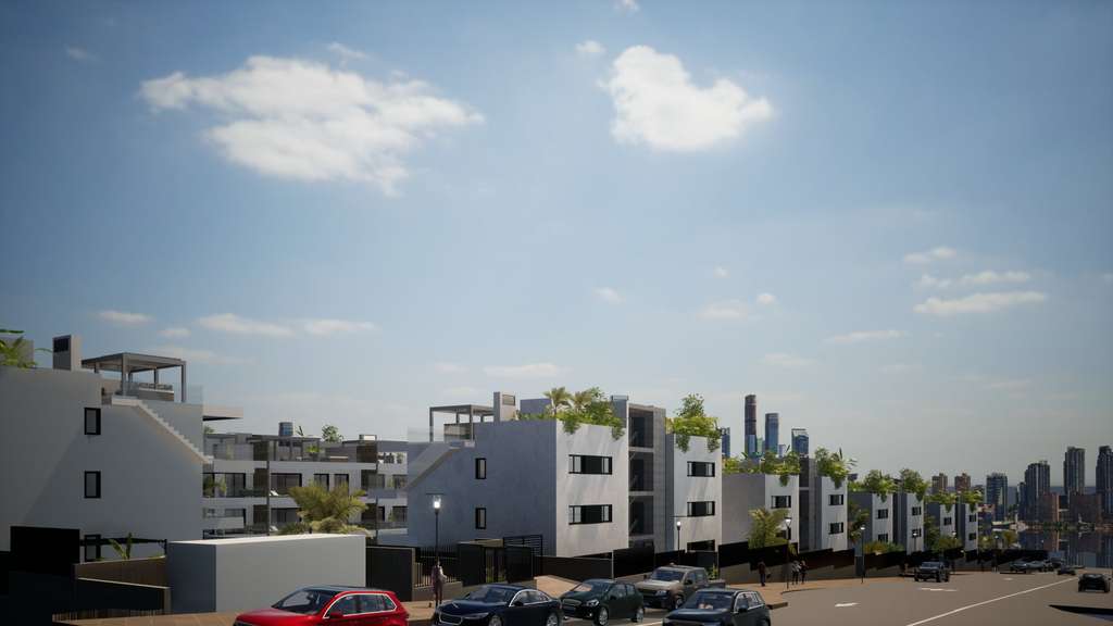 Ubicado en la encantadora localidad de Finestrat, este conjunto residencial ofrece una selección exclusiva de 25 propiedades que incluyen apartamentos, plantas bajas y áticos. Diseñado para aquellos que buscan un hogar con vistas al mar, cada vivienda está situada a solo 3 km de la costa, permitiendo disfrutar de la brisa marina y el paisaje mediterráneo. Las propiedades están completamente amuebladas y cuentan con características modernas como aire acondicionado, electrodomésticos de alta calidad y persianas eléctricas. Además, todas las viviendas disponen de armarios empotrados, asegurando un espacio de almacenamiento óptimo.EXTERIORESLos exteriores de estas viviendas están diseñados para maximizar el disfrute del clima mediterráneo. Cada propiedad cuenta con una terraza privada, ideal para relajarse al aire libre. Las plantas bajas ofrecen un jardín privado, mientras que los áticos incluyen un solárium, proporcionando un espacio adicional para disfrutar del sol. Además, algunas propiedades cuentan con una piscina privada opcional, perfecta para refrescarse durante los cálidos días de verano.INTERIORESEl interior de las viviendas está cuidadosamente diseñado para ofrecer confort y funcionalidad. Los suelos de gres porcelánico aportan un toque de elegancia y son fáciles de mantener. Las viviendas disponen de dos dormitorios y dos baños, ofreciendo un espacio cómodo para familias o parejas. La distribución incluye una cocina equipada con electrodomésticos modernos, asegurando que cada detalle esté pensado para facilitar la vida diaria.ZONAS COMUNESEl residencial cuenta con una variedad de zonas comunes que enriquecen la experiencia de vivir en este entorno. Los residentes pueden disfrutar de una piscina comunitaria y un jacuzzi, ideales para relajarse y socializar. Para los más activos, hay un gimnasio comunitario y una pista de pádel. Las áreas ajardinadas proporcionan un entorno verde y tranquilo, mientras que el parque infantil es perfecto para los más pequeños. Estas instalaciones aseguran que haya algo para cada miembro de la familia.FINESTRATFinestrat, en la provincia de Alicante, es un lugar que combina la serenidad rural con la proximidad a zonas turísticas populares. Aunque no sea un destino turístico principal, su encanto radica en su belleza natural y su ambiente tranquilo. El turismo en Finestrat se centra en su entorno montañoso y en su proximidad a atracciones como el parque temático Terra Mítica y sus calas cercanas, como Cala Finestrat, ideales para disfrutar del mar. El estilo de vida en Finestrat es apacible y orientado a la naturaleza. Los residentes disfrutan de la vida tranquila en un entorno rural, donde se valora la tranquilidad y se fomenta la cercanía comunitaria. La gastronomía local se basa en platos típicos de la región, con influencias mediterráneas. Finestrat ofrece un ambiente sereno y natural para aquellos que buscan una vida apacible cerca de destinos turísticos reconocidos en la Costa Blanca.