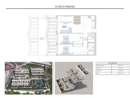 Este complejo de modernos bungalows de 2 y 3 dormitorios, todos con 2 baños, cocina americana con el salón y comedor.