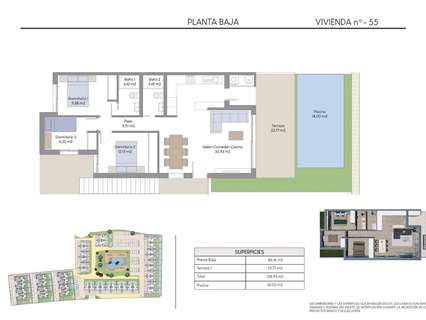 El complejo de obra nueva consta de 60 bungalows de 2 o 3 dormitorios y 2 baños con acceso a las zonas comunes y a la piscina. Algunas unidades tienen además piscina privada.