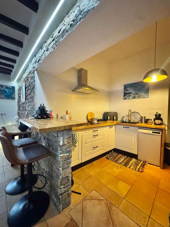 Encantadora casa adosada en el corazón de Finestrat Pueblo – 102 m² con vistas a la montañaDescubre esta acogedora y luminosa casa adosada de 102 m² situada en el pintoresco casco antiguo de Finestrat, a pocos pasos de todos los servicios y con el inconfundible encanto de un pueblo tradicional. La vivienda se distribuye en tres plantas más un solárium privado con impresionantes vistas a la majestuosa montaña del Puig Campana.En la planta principal, la casa ofrece un amplio salón-comedor integrado con una cocina totalmente equipada, ideal para disfrutar de una vida cómoda y práctica. Un aseo de cortesía y un encantador patio interior completan este nivel, perfecto para relajarse al aire libre o compartir momentos con amigos y familia.En la primera planta, encontrarás dos dormitorios dobles, un baño completo y una pequeña terraza, aportando luminosidad y ventilación natural a los espacios.La segunda planta alberga un amplio dormitorio de concepto abierto, tipo suite, con su propio baño, perfecto como dormitorio principal o incluso como espacio polivalente para invitados, oficina o sala de descanso.Por último, el solárium en la azotea ofrece un rincón único para desconectar, con posibilidad de instalar una barbacoa y disfrutar de las vistas panorámicas al Puig Campana y al encantador entorno del pueblo.Una propiedad llena de carácter, ideal como residencia habitual, segunda vivienda o inversión con encanto en uno de los pueblos más bonitos de la Costa Blanca.