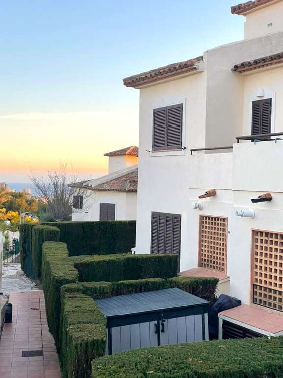 Descubra esta luminosa y acogedora casa tipo bungalow, ubicada en la exclusiva urbanización cerrada de Sierra Cortina, a tan solo 3 km de la playa de Poniente. Esta propiedad combina confort, funcionalidad y entorno natural, ideal para quienes buscan tranquilidad sin renunciar a la cercanía del mar y los servicios urbanos.
