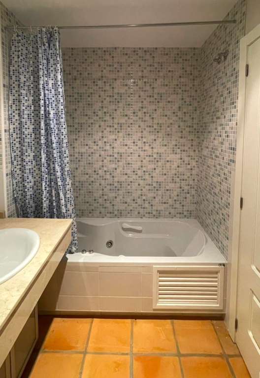 El entorno de la urbanización ofrece extensas zonas ajardinadas con senderos para pasear, así como piscinas comunitarias, ideales para el relax y el ocio familiar. La vivienda dispone además de aire acondicionado, terraza, jardín, y su propia plaza de aparcamiento, todo en un estado de buen mantenimiento.