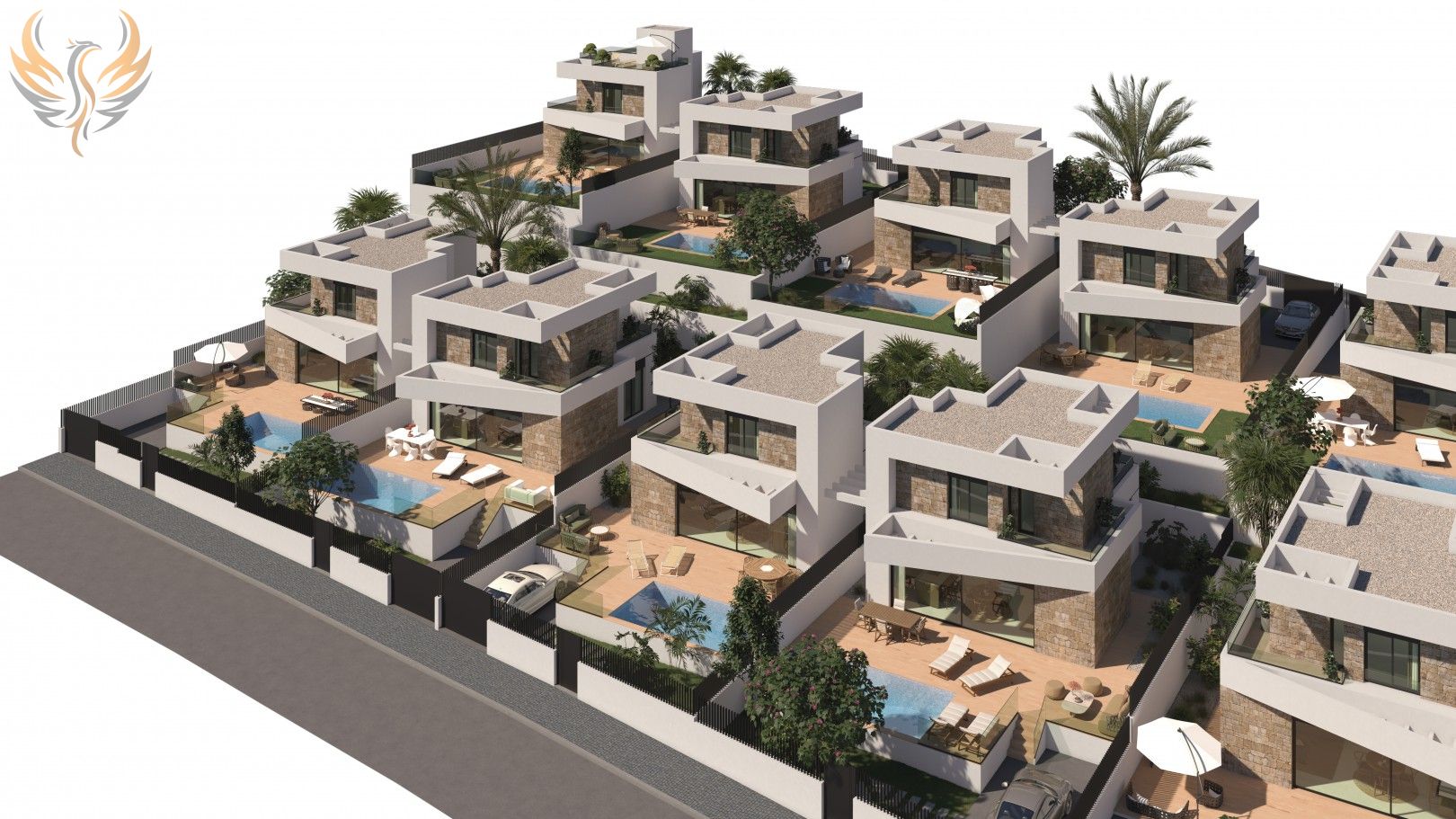 Villa 08. Con un total de 3 Dormitorios y 3 Baños. 116,90m2 de Vivienda. 23,70m2 de Terrazas. Un Total de 140,60m2. Parcela 327,40m2. Piscina 19,50m2. Precio 510.000 € Entrega en 18 Meses