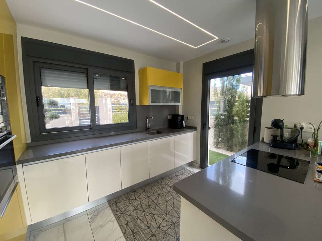Descubre esta encantadora villa situada en el apacible entorno del Balcón de Finestrat. Construida en 2019, esta propiedad ofrece comodidades modernas y acabados de calidad.Con una parcela de 250m2, esta villa te brinda un espacio privado para disfrutar en familia o con amigos. Los acabados de lujo aportan elegancia a cada rincón, creando un ambiente acogedor y moderno.Disfruta de refrescantes baños en la piscina infinity, perfecta para relajarte y aprovechar el clima mediterráneo. Además, podrás controlar fácilmente la iluminación y la climatización de tu hogar gracias al sistema de domótica integrado.En la planta baja, encontrarás una habitación, un baño, una cocina totalmente equipada y un luminoso salón comedor con acceso directo a la piscina. En la segunda planta, se ubica el dormitorio principal con baño en suite, un segundo dormitorio y otro baño, ofreciendo privacidad y comodidad para toda la familia. En la tercera planta, un amplio solarium te ofrece vistas panorámicas del entorno, ideal para momentos de tranquilidad y contemplación.Además, en la parcela, dispones de un espacio de aparcamiento privado para mayor comodidad y seguridad.Esta villa de estilo moderno es perfecta para aquellos que buscan un hogar cómodo y funcional en una ubicación privilegiada. ¡No dudes en contactarnos para más información!