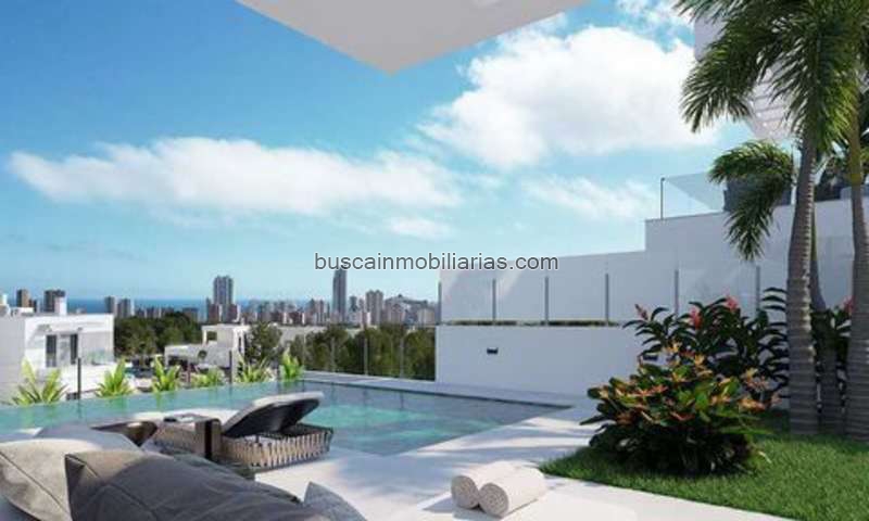 Descripción del objeto: Maravillosos chalets modernos con una superficie construida de unas 175 m² - 293 m² (incluyendo terrazas) con 3 dormitorios, 3 baños (1 en-suite), 1 salón / comedor grande con cocina moderna, 1 porche (a unos 64 m²), 2 terrazas (a unos 12 m² y 16 m²) y 1 sótano/garaje (a unos 28 m² - 146 m²). Las parcelas tienen un tamaño de 455 m² - 645 m². El residencial consta de 12 amplias parcelas ajardinadas con modernas viviendas, y piscinas independientes y sótanos. Muchas de las villas también tienen sótano. Todas ellas ofreciendo un entorno muy agradable e íntimo. Todas nuestras villas tienen su fachada principal orientada al Sureste y cuentan con grandísimos ventanales que permiten la entrada de luz natural durante todo el día. Sus grandes pérgolas permiten disfrutar de un agradable espacio al aire libre, ampliando la zona de estar interior y fusionándose ésta con el exterior. Se trata de un hogar de lujo con amplias y luminosas estancias de espacios diseñados para ser vividos, de concepto abierto en su planta baja, con excepcionales vistas, que además se encuentra en una urbanización exclusiva y consolidada, a tan sólo un paso del mar y de la montaña. Equipamiento adicional: El equipamiento de alta calidad de las viviendas incluye ventanas y puertas de aluminio con doble acristalamiento y persianas motorizadas, puertas de seguridad, videoportero, cocinas amuebladas con electrodomésticos, armarios empotrados en dormitorios, muebles de baño, aparatos sanitarios de VILLEROY & BOSCH o similar, suelo radiante en baños, aire acondicionado, punto de recarga eléctrica para vehículos, iluminación interior y exterior, una piscina INFINITY con iluminación, instalación de electrolisis salina y preinstalación de bomba de calor y mucho más. Ubicación de casa/solar: La urbanización bonita se encuentra a unos 3,5 km de las playas de Benidorm y el aeropuerto de El Altet (Alicante) se alcanza dentro de unos 45 minutos usando la autopista A7. Un centro comercial con muchas tiendas y una amplia oferta de ocio se encuentra a una distancia de 1,2 km y en Benidorm hay todo tipo de servicios y una amplia oferta deportiva así como muchas posibilidades de entretenimiento y diversión. Entre las dos playas cuidadas de Benidorm se encuentra una roca con mirador que ofrece incomparables vistas sobre la bahía. Alicante, la capital de la provincia, se alcanza en pocos minutes en coche. Allí se encuentran varios teatros y exposiciones, un castillo con una fantástica panorámica, un gran puerto deportivo con un paseo maravilloso así como diversos parques y plazas históricas y modernas. Otros: Calificación energética está pendiente.