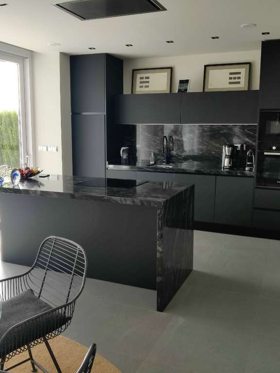 Cocina de lujo totalmente equipada con electrodomésticos empotrados de alta calidad.