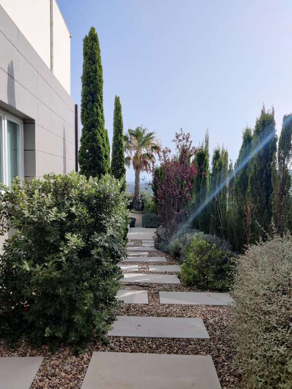 Esta elegante villa está situada en una generosa parcela de 750 m², completamente vallada y rodeada por un jardín mediterráneo maduro que garantiza una paz y privacidad óptimas. Disfrute de impresionantes vistas tanto al mar Mediterráneo como a las montañas circundantes, gracias a su ubicación ideal orientada al sur.