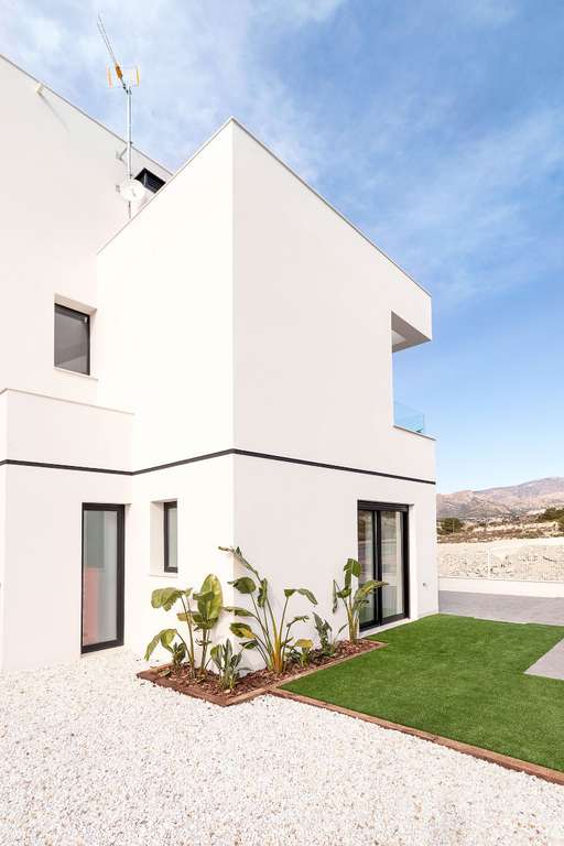 Esta exclusiva propiedad ofrece grandes parcelas con impresionantes vistas al mar y al skyline de Benidorm.