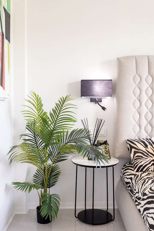 El jardín, diseñado al estilo mediterráneo, incluye una palmera, césped artificial, iluminación y sistema de riego automático. Para mayor comodidad, la propiedad cuenta con un elevador hidráulico.