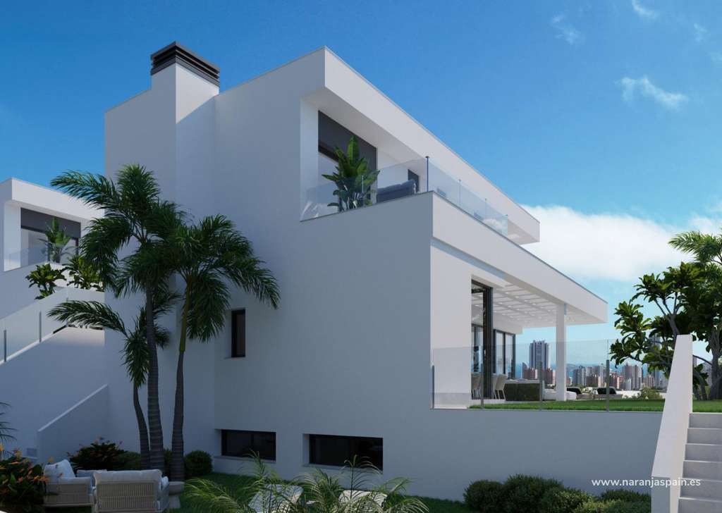 Villas modernas de 3 dormitorios y 3 baños, cocina americana con salón, terraza con magníficas vistas sobre Benidorm, jardín privado con piscina, sótano, parking y trastero.