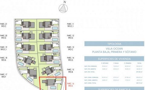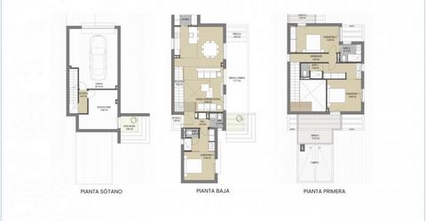 Las villas, construidas en 2 plantas, disponen de 3 dormitorios, 3 baños, aseo, cocina americana con salón, armarios empotrados, terrazas, jardín privado con piscina y sótano con garaje.