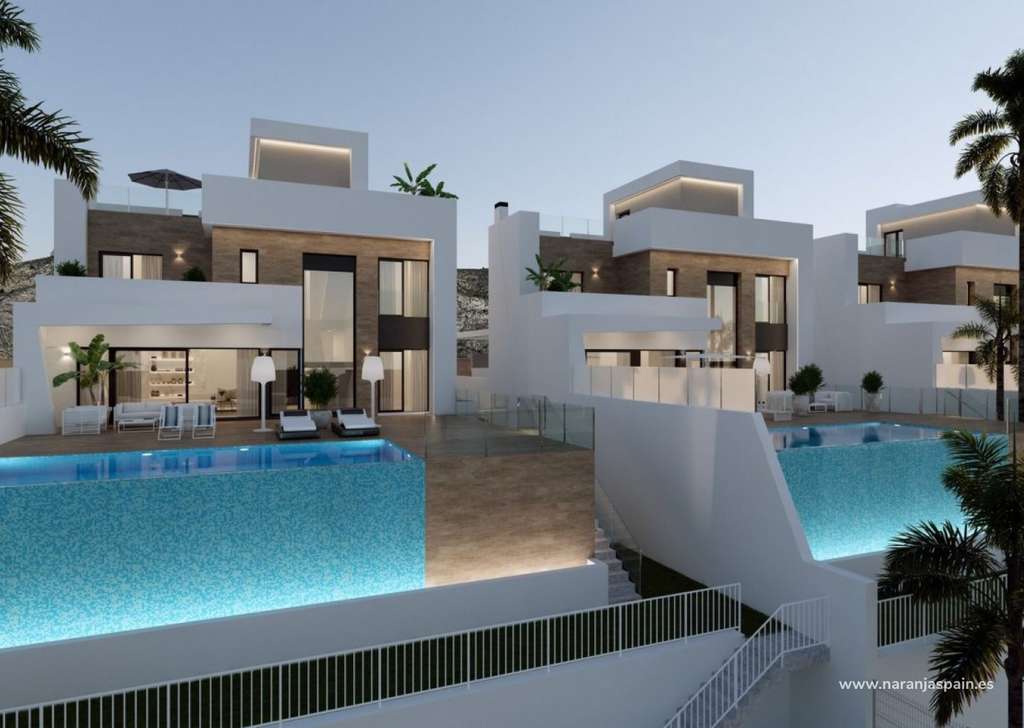 Villas de lujo ubicadas en complejo residencial Obra Nueva en Finestrat. Estas villas constan de dos plantas, solárium, sótano y jardín interior con piscina privada.