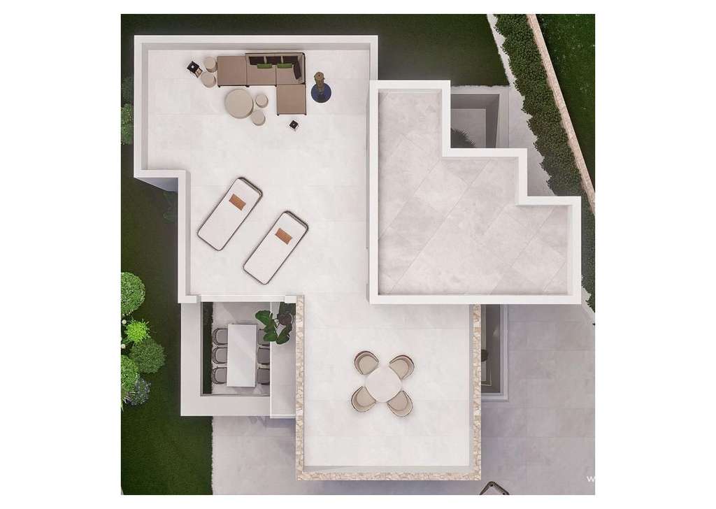 Las villas se distribuyen en 2 plantas y disponen de 3 dormitorios, 3 baños, cocina americana con salón, armarios empotrados, solarium privado, jardín con piscina y aparcamiento para 2 coches.