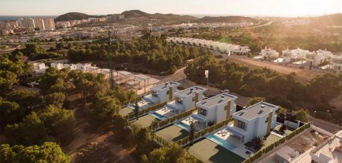 VILLAS DE OBRA NUEVA EN FINESTRAT Residencial de obra nueva de 9 villas en Finestrat, en Sierra Cortina - una de las mejores urbanizaciones de la Costa Blanca. Residencial consta de 4 tipos diferentes de viviendas adaptadas a las necesidades de los clientes. Algunos de los modelos vienen construidos en 1 o 2 plantas, con sótano, solarium. Todas las villas tienen 3 dormitorios, 2 o 3 baños, cocina americana con salón, armarios empotrados, aire acondicionado y aerotermia, cocina equipada, jardín privado con piscina y parking. Residencial ubicado en el complejo turístico Sierra Cortina, junto a dos campos de golf, parques temáticos, un gran centro comercial y a escasos minutos de las playas de Benidorm. Finestrat ubicado en la comarca de la Marina Baixa de la Costa Blanca, cerca de la vecina Benidorm y a unos 40 kilómetros de la ciudad de Alicante y del aeropuerto internacional. El pueblo está situado en la ladera de la montaña de Puig Campana y ofrece hermosas vistas de la montaña, la costa y el mar Mediterráneo.