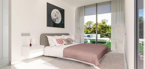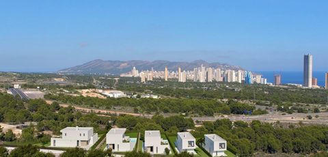 Villas con 3 dormitorios y 3 baños, cocina americana con salón, terraza con magníficas vistas sobre Benidorm, jardín privado con piscina y plaza de aparcamiento.