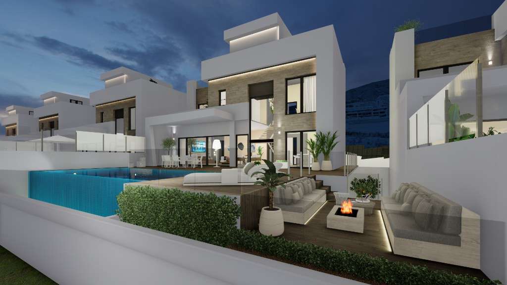 Villas de obra nueva en venta en Benidorm.Complejo de nueva construcción con villas de lujo, cada una con vistas panorámicas al mar. Las villas tienen 4 dormitorios, 5 baños, amplio salón y cocina, terraza, un precioso jardín exterior con piscina "infinity" y aparcamiento privado. Cada villa está equipada con un ascensor.Los trabajos de construcción se llevan a cabo utilizando solo materiales de primera calidad y acabados como: ventanas de aluminio con doble acristalamiento, platos de ducha en los baños, porcelanato de primera calidad para el piso e interiores, puertas de entrada automáticas con intercomunicador, preinstalación de aire acondicionado. y mucho más extras.Nuevo complejo - ubicado a pocos kilómetros de la popular ciudad de entretenimiento en la Costa Blanca - Benidorm. Cerca encontrará tiendas, supermercados, bancos, restaurantes, escuelas. Pero si lo que busca es entretenimiento, pues a pocos minutos encontrará campos de golf, casinos, centros comerciales, parques acuáticos, discotecas y mucho más entretenimiento. A tan solo 55 km del aeropuerto de Alicante. Buena elección para vivir en España todo el año.