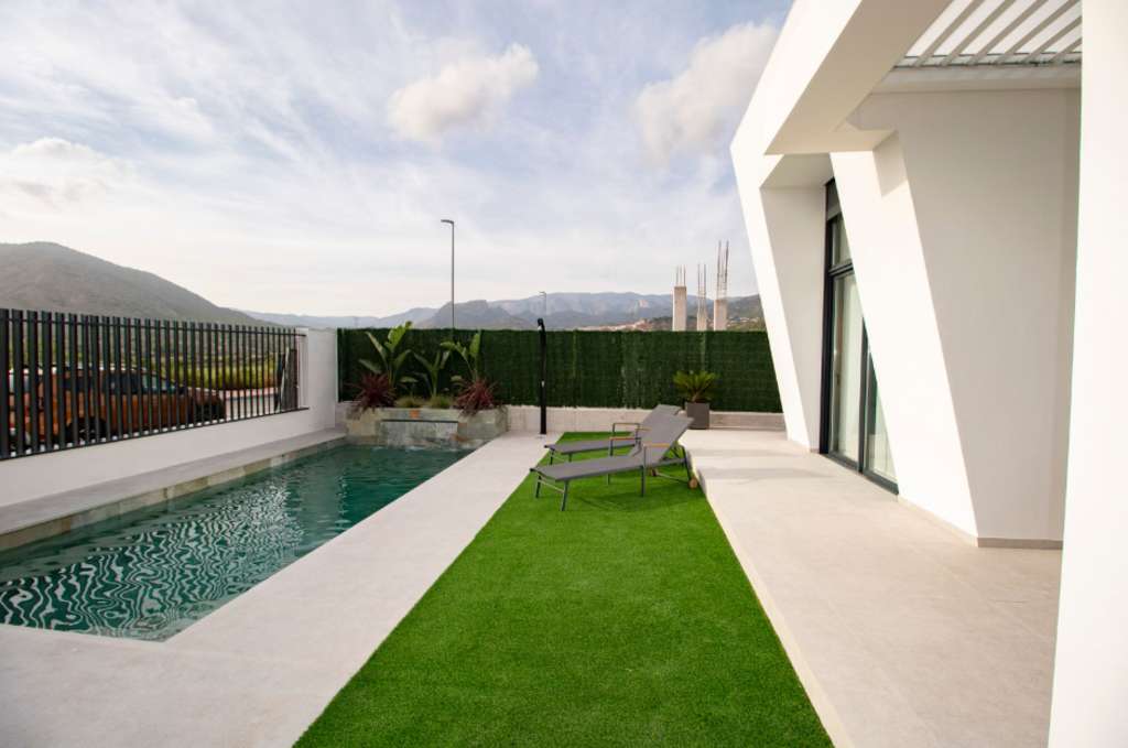 Villas de obra nueva en venta en Finestrat.Complejo de nueva construcción que cuenta con villas de 3 dormitorios, 3 baños, amplio salón y cocina, terraza, solárium y precioso jardín exterior con piscina privada. Puede elegir villa con vistas al mar o a la montaña, Opcional: sótano.Los trabajos de construcción se llevan a cabo utilizando únicamente materiales de primera calidad y acabados como: ventanas de aluminio con doble cristal, platos de ducha en los baños, porcelanato de primera calidad para el suelo e interiores, preinstalación de aire acondicionado y muchos más extras.Nuevo complejo - ubicado a pocos kilómetros de la popular ciudad de entretenimiento en la Costa Blanca - Benidorm. Cerca encontrará tiendas, supermercados, bancos, restaurantes, escuelas. Pero si lo que busca es entretenimiento, pues a pocos minutos encontrará campos de golf, casinos, centros comerciales, parques acuáticos, discotecas y mucho más entretenimiento. A tan solo 55 km del aeropuerto de Alicante. Buena elección para vivir en España todo el año.