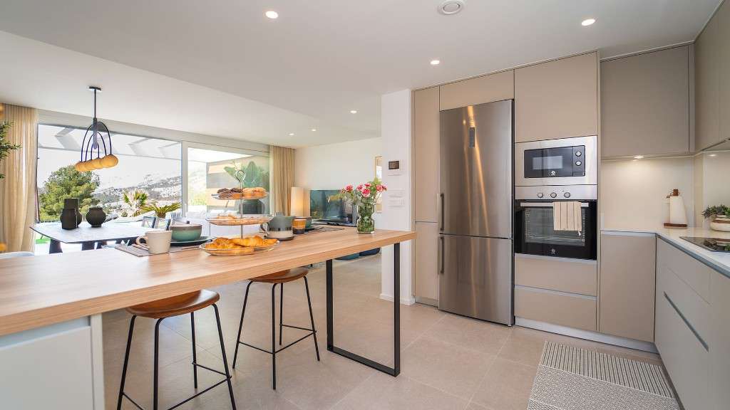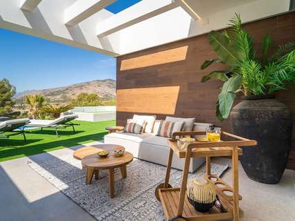 Villas de nueva construcción con vistas al mar en venta en Finestrat.Complejo de obra nueva que cuenta con villas de 3 dormitorios, 2 o 3 baños, amplio salón y cocina, terraza, solárium, precioso jardín exterior con piscina privada y garaje para 2 coches.La obra de construcción se realiza utilizando únicamente materiales y acabados de primera calidad como: ventanas de aluminio climalit, platos de ducha en los baños, porcelánico de primera calidad utilizado en suelos e interiores, preinstalación de aire acondicionado y muchos más extras.Nuevo complejo, ubicado a pocos kilómetros de la popular ciudad de entretenimiento de la Costa Blanca: Benidorm. Cerca encontrará comercios, supermercados, bancos, restaurantes, colegios. Pero si desea entretenimiento, a solo unos minutos encontrará golf, casinos, centros comerciales, parques acuáticos, discotecas y mucho más entretenimiento. A sólo 45 km del aeropuerto de Alicante. Buena elección para vivir en España todo el año.