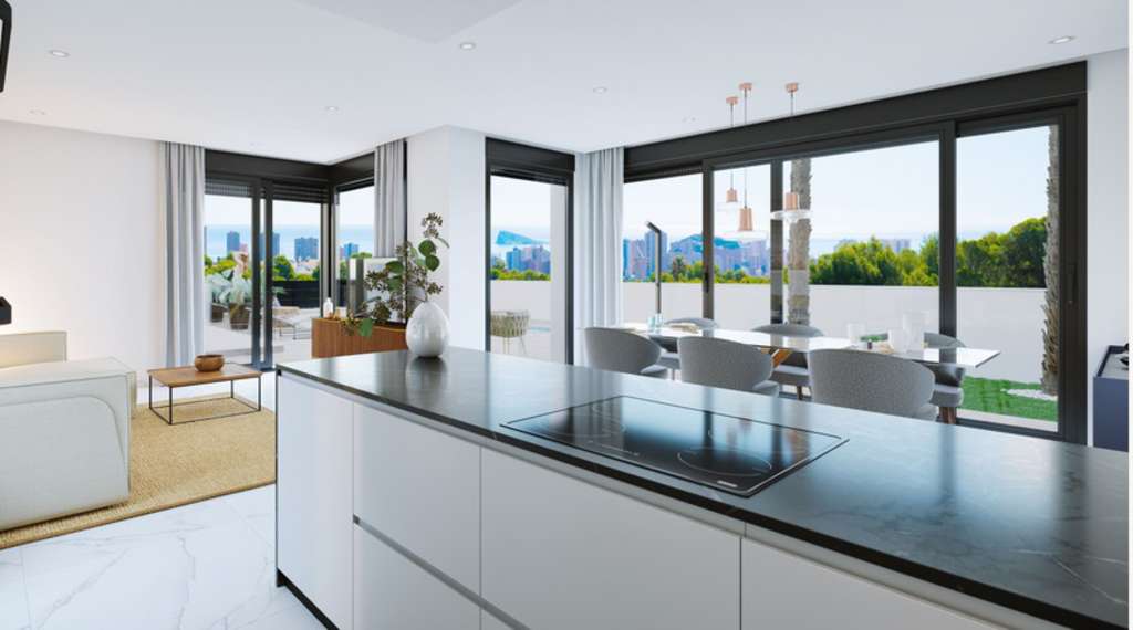 Villas de obra nueva en venta en Finestrat.Complejo de nueva construcción que cuenta con villas de 4 dormitorios, 4 baños, amplio salón y cocina, terraza, precioso jardín exterior con piscina privada.La obra de construcción se realiza utilizando únicamente materiales y acabados de primera calidad como: ventanas de aluminio climalit, platos de ducha en los baños, porcelánico de primera calidad utilizado en suelos e interiores, preinstalación de aire acondicionado y muchos más extras.Nuevo complejo, ubicado a pocos kilómetros de la popular ciudad de entretenimiento de la Costa Blanca: Benidorm. Cerca encontrará comercios, supermercados, bancos, restaurantes, colegios. Pero si desea entretenimiento, a solo unos minutos encontrará golf, casinos, centros comerciales, parques acuáticos, discotecas y mucho más entretenimiento. A sólo 45 km del aeropuerto de Alicante. Buena elección para vivir en España todo el año.