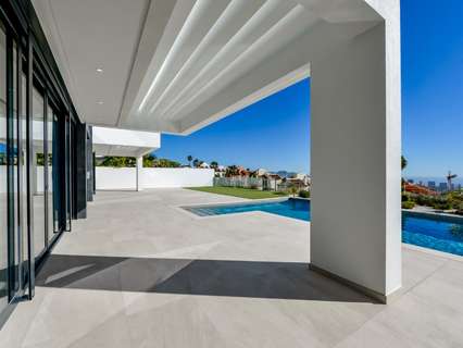 Villa de nueva construcción con vistas al mar en venta en Finestrat.Ofrecemos villa de lujo de nueva construcción con 8 dormitorios, 5 baños, amplio salón de unos 92 m2, cocina, terraza, precioso jardín exterior con piscina privada.La obra de construcción se realiza utilizando únicamente materiales y acabados de primera calidad como: ventanas de aluminio climalit, platos de ducha en los baños, porcelánico de primera calidad utilizado en suelos e interiores, aire acondicionado, sistema domótica, garaje para 4 vehículos con puertas automáticas, jardín completamente terminado con riego automático y muchos más extras.La villa está situada a pocos kilómetros de la popular ciudad de entretenimiento de la Costa Blanca: Benidorm. Cerca encontrará comercios, supermercados, bancos, restaurantes, colegios. Pero si desea entretenimiento, a solo unos minutos encontrará golf, casinos, centros comerciales, parques acuáticos, discotecas y mucho más. A sólo 45 km del aeropuerto de Alicante. Buena elección para vivir en España todo el año.