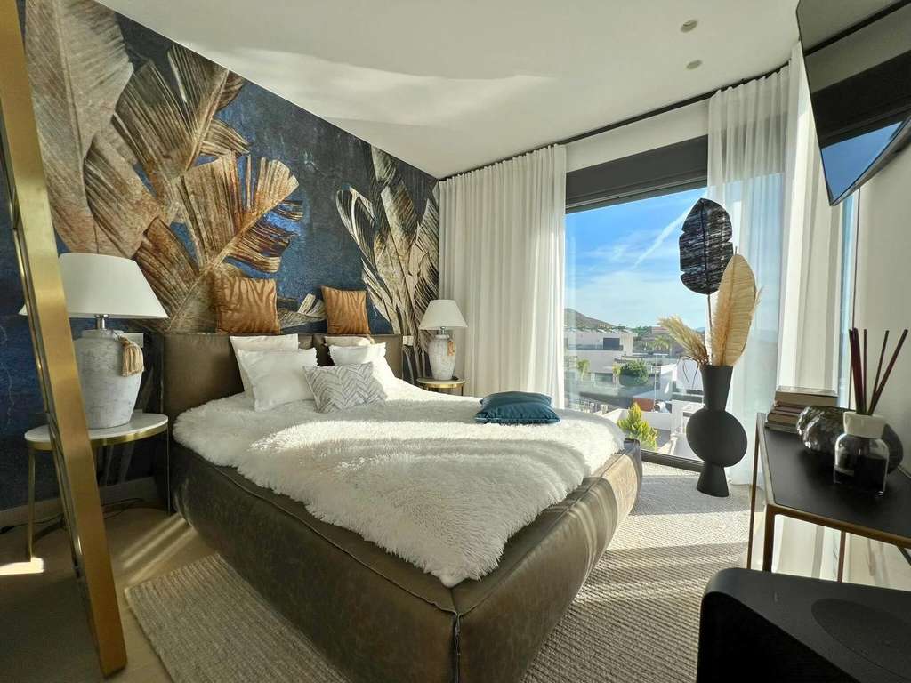 La planta superior es un refugio privado con un dormitorio principal, un elegante baño, un vestidor y una terraza exclusiva con jacuzzi, ideal para relajarse mientras se disfrutan las vistas.